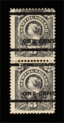 1806 og 75,77 image#75, 77, 1897 "ONE CENT" Ty. I and III on 3c Gray lilac, vertical se-tenant pair, top stamp being Ty. I and the bottom stamp is the scarce Ty. III surcharge, fresh color, o.g., some strengthening of the perforations between stamps, fine-very fine; the scarce surcharge is especially desirable in a se-tenant pair (S.G. #80, 82; £490+). (Image) 540.00+