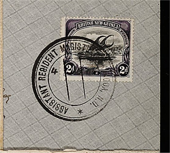 1879 c 3 image#3, 1901 2p Violet and black, fresh single tied by manuscript dated "Assistant Resident Magistrate, Kokoda, N.D." double ring h.s. to cover, addressed to Samarai, also included is a 1p Carmine and black (#2) tied on piece similarly cancelled, both are very fine. (Image) Est. 300-400