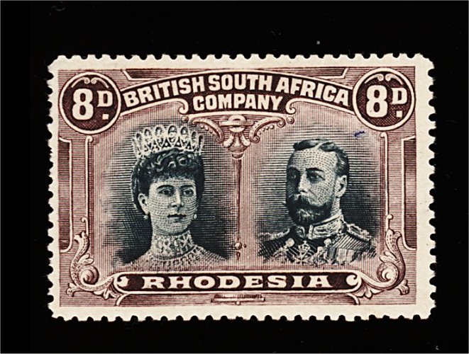 1948 og 109 var image#109 var., 1910 8p Black and purple, quite well centered for this, rich unmistakable colors, o.g., h.r., bit of gum loss from hinge removal, small mark above King's head (not mentioned on certificate), otherwise very fine; a rare shade; 1991 Holcombe certificate (S.G. #146). (Image) S.G. £3,750