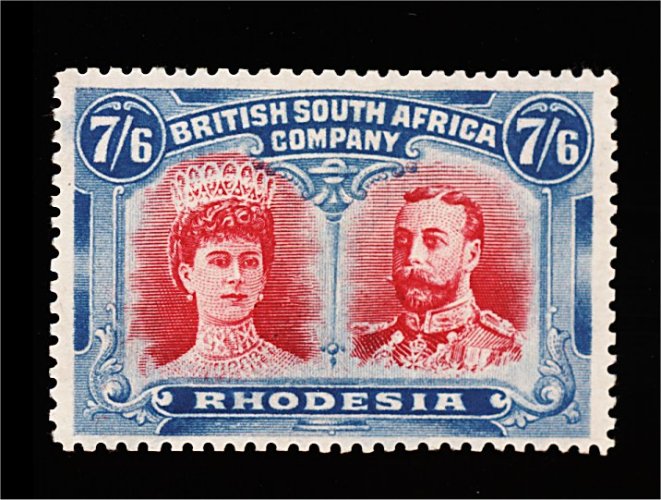 1949 og 116 image#116, 1910 7/6 Bright blue and carmine, gorgeous rich colors on bright paper, quite well centered, o.g., lightly hinged, very fine; 2001 BPA certificate (S.G. #161; £650). (Image) 600.00