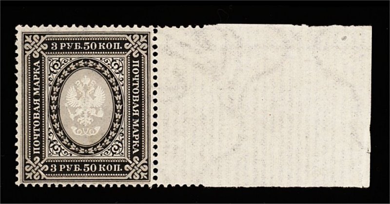 1951 og 39 image#39, 1884 3.50R Black and gray on vertically laid paper, pristine right sheet-margin mint example, lovely colors, o.g., stamp with only the slightest trace of a hinge, extremely fine. (Image) 475.00