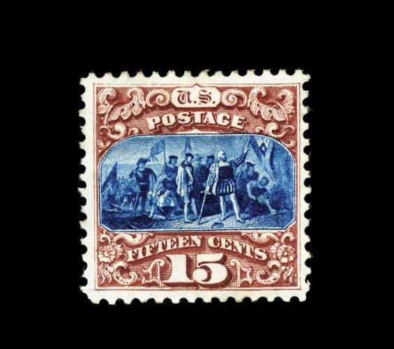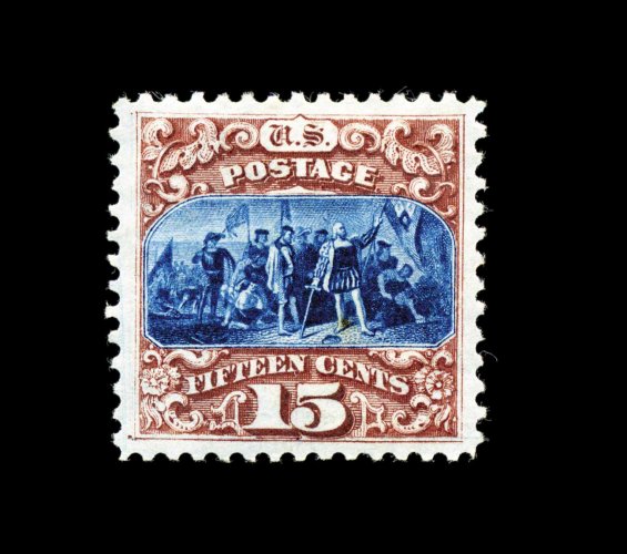 184 og 129 image#129, 15c Brown and blue re-issue, Ty. III, extraordinarily well centered within large margins, strikingly intense colors and prooflike impressions on bright fresh paper, full o.g., extremely fine; a particularly choice and handsome example; 1990 PF certificate. (Image) 2,000.00