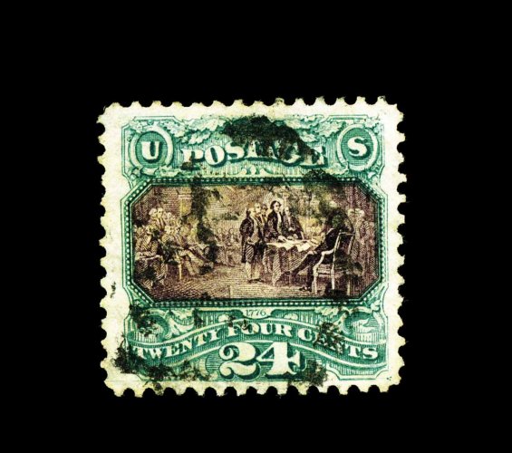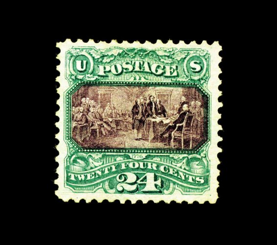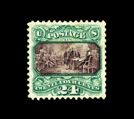 188 O 130 image#130, 24c Green and violet re-issue, an exceptionally choice used example of this value which, despite its disparity in catalog value, is far more elusive to find used than mint, wonderfully well centered within large margins, strong rich colors, a light unobtrusive strike of duplex numeral in grid postmark confirms its contemporaneous usage, extremely fine; only a minute number of the 2,091 issued of this value were ever used, and few of these are found in the premium quality this stamp possesses; 2000 PF certificate. (Image) 1,400.00