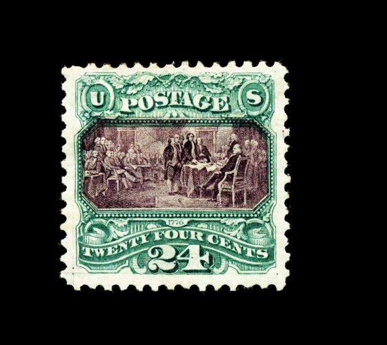 185 og 130 image#130, 24c Green and violet re-issue, exceptional quality mint example of this very scarce re-issue, possessing near perfect centering amid very large margins, strong fresh colors and impressions, o.g., extremely fine; seldom encountered both this well centered and with such large margins; only 2,091 issued; 1976 PF certificate. (Image) 2,250.00
