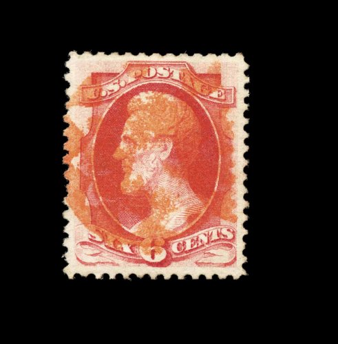 194 O 137 image#137, 6c Carmine with grill, highly select used example, extraordinarily well centered within unusually large margins, deep rich color and impression on bright paper, all wonderfully complemented by a striking fancy red postmark centrally struck, extremely fine; a stamp with tremendous visual appeal; 2001 PF certificate. (Image) 560.00
