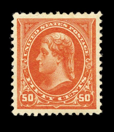 288 og 260 image#260, 50c Orange, a striking gem mint example of this value, perfectly centered amid margins that are incredibly large for this typically tightly margined stamp, gorgeous vibrant color and a deeply etched impression on bright fresh paper, pristine o.g. with only a very light hinge mark, extremely fine; actually a very rare stamp in this outstanding quality, as large-margined mint examples of this are few and far between; 1981 and 1992 PF certificates. (Image) 475.00