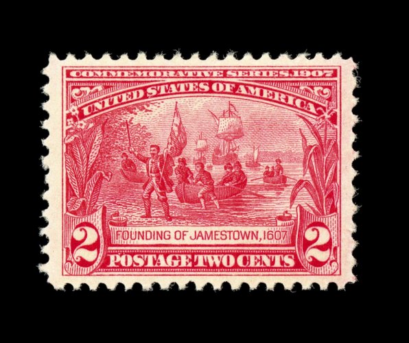 366 nh 329 image#329, 2c Jamestown, impressive large-margined mint single, featuring enormous margins that are most uncommon to this typically tightly margined series, bright fresh color, o.g., n.h., extremely fine; 1997 PF certificate; ex-Billington. (Image) 65.00