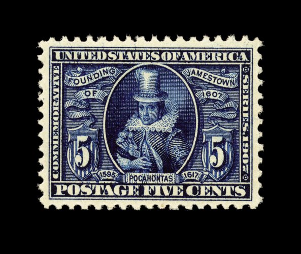 367 nh 330 image#330, 5c Jamestown, a most extraordinary mint example of this stamp, which is one of the most challenging of all U.S. commemoratives to find in true gem quality, possessing essentially perfect centering amid huge margins for this issue, gorgeous intense color and impression on brilliantly white paper, immaculate o.g., n.h., extremely fine; the perfect example for the collector who has been patiently waiting for a gem example to make an appearance on the auction block; 2001 PF certificate. (Image) 250.00