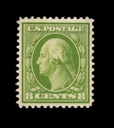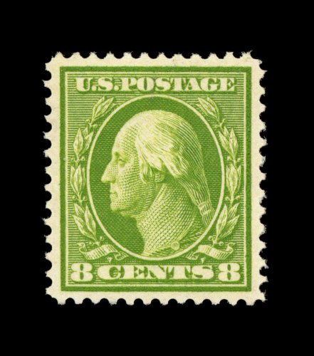370 nh 337 image#337, 8c Olive green, precisely centered, large margins, brilliantly fresh color, o.g., n.h., extremely fine and quite handsome. (Image) 90.00