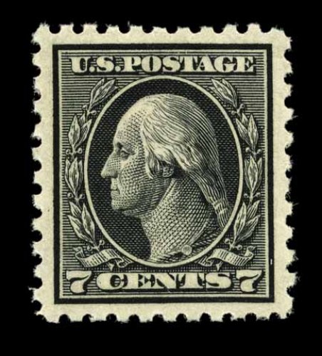 447 nh 430 image#430, 7c Black, a highly select mint example of this value, which happens to be one of the most elusive of the entire perf. 10 watermarked series to find in true gem quality, featuring huge margins all around and being perfectly centered within them, prooflike color and impression, immaculate o.g., n.h., extremely fine; 2001 PF certificate. (Image) 160.00