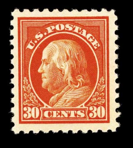 452 nh 439 image#439, 30c Orange red, impressive mint single boasting huge margins all around, marvelously well centered within them, especially intense color and impression, o.g., n.h., extremely fine; a striking stamp. (Image) 475.00
