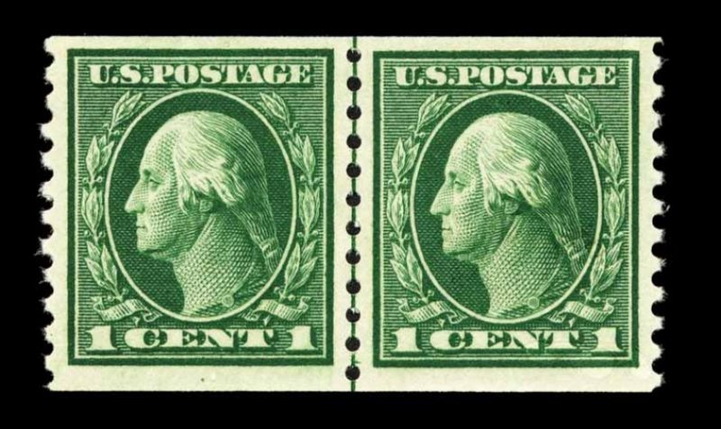 457 nh 443 image#443, 1c Green flat plate coil, perf. 10 vert., guide line pair, extraordinarily well centered within especially large margins, rich luxuriant color and a razor-sharp impression on immaculate paper, o.g., n.h., extremely fine; 1993 PF certificate. (Image) 280.00