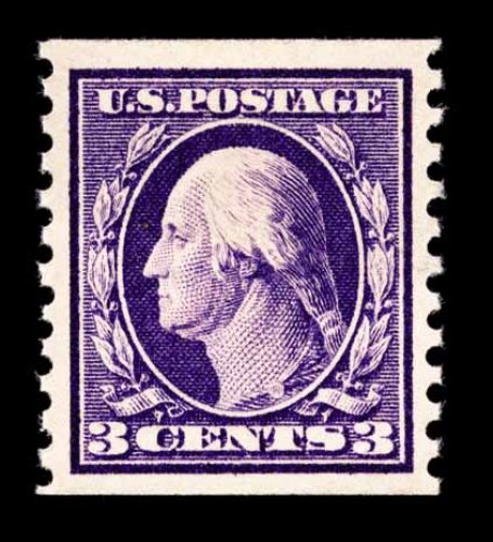 460 nh 445 image#445, 3c Violet flat plate coil, perf. 10 vert., gem mint single, incredibly well centered and margined, strikingly intense color and impression, pristine o.g., n.h., extremely fine; premium quality singles of the flat plate coils are exceedingly difficult to find. (Image) 400.00