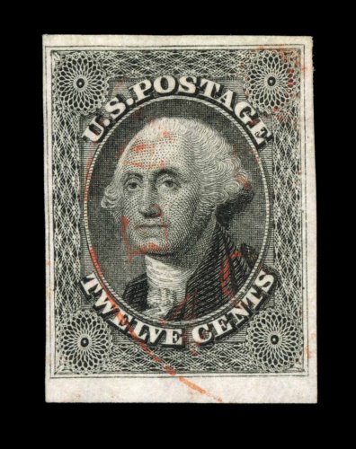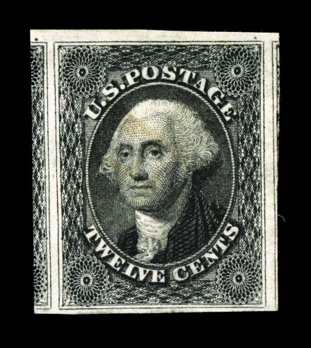 57 ng 17 image#17, 12c Black, rare certified unused example, with ample to mostly large margins all around (just touching at bottom left), deep rich color, sharp impression, very slight and insignificant staining in top margin, still nearly very fine; 1989 PF certificate. (Image) 2,250.00