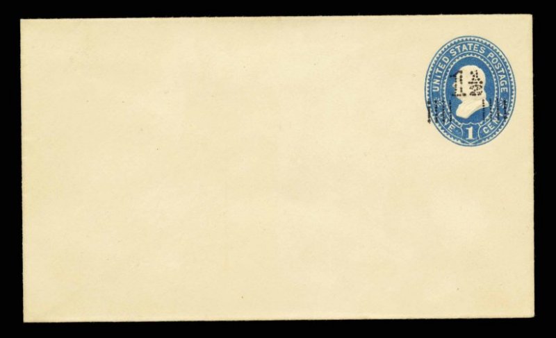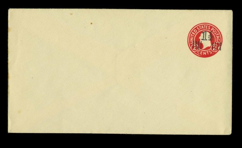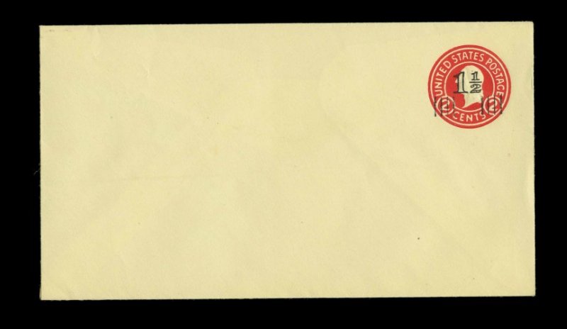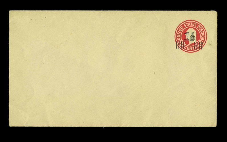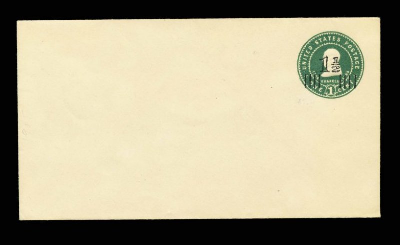 767 ogc U520b image#U520b, 1 1/2 on 2c Carmine on white, die 6, UPSS die 139(F), size 13, knife 79, wmk. 22, mint entire, faint trace of toning at left edge, still very fine and quite scarce (UPSS #3251). (Image) 500.00