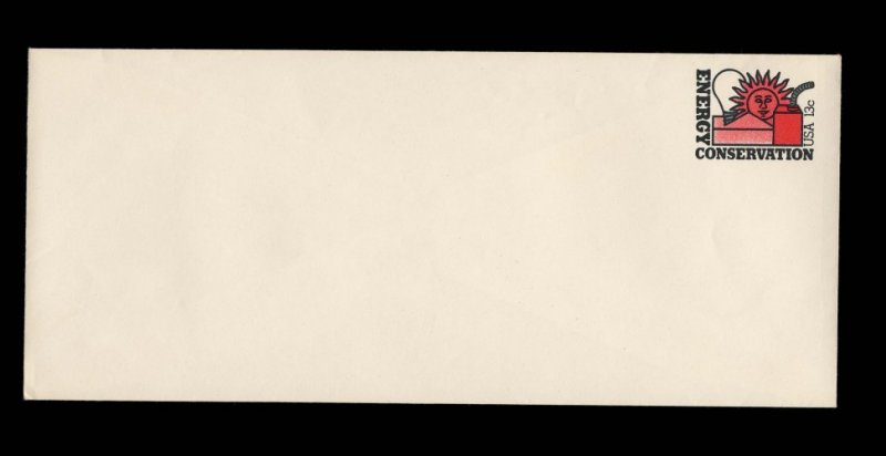 773 ogc U584d image#U584d, 13c Energy Conservation, black and red colors omitted, die 213, size 12, knife 69, wmk. 49, mint entire, just the faintest trace of slight paper discoloration, still very fine; the rarest of all the known missing color errors found on this entire (UPSS #3602a). (Image) 425.00