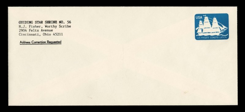 776 ogc U612a image#U612a, 8.4c Mayflower, black color omitted, a seldom seen mint entire of this striking error, larger size entire with printed return corner card address as found on all existing examples, bright and fresh, extremely fine; according to the Datz catalog only eight such error entires have been reported. (Image) 600.00