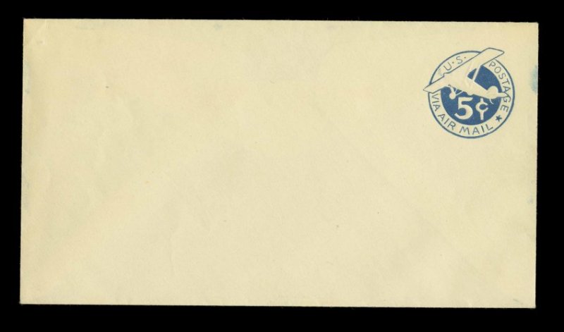 780 ogc UC1 var. image#UC1 var., 5c Blue on white, die 1, bicolored border omitted, UPSS die AM1, size 10, knife 57, wmk. 28, fresh mint entire, with just a trace of blue ink showing (as found on this error), a very fine and choice example of this very rare and seldom offered error (UPSS #AM-1a). (Image) 1,300.00