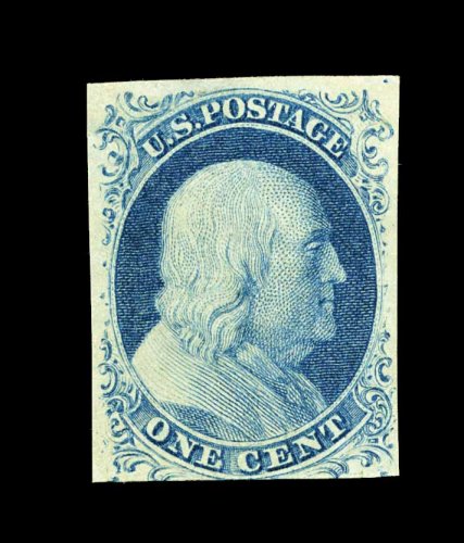 11 ng 6 image#6, 1c Blue, Ty. Ia, position 92R4, an immensely rare unused example, possessing margins that range from large to just cutting (although not objectionably and is actually quite well balanced), deep luxuriant color and a strong detailed impression, sound, with trace of o.g. (cataloged as a no gum example), fine; one of the most elusive stamps in United States philately to find unused, particularly sound and certified; 1997 PF certificate. (Image) 19,000.00