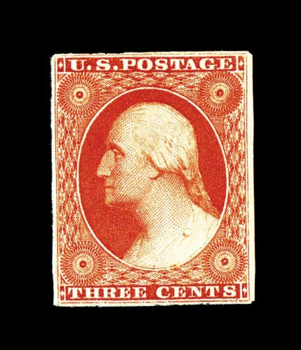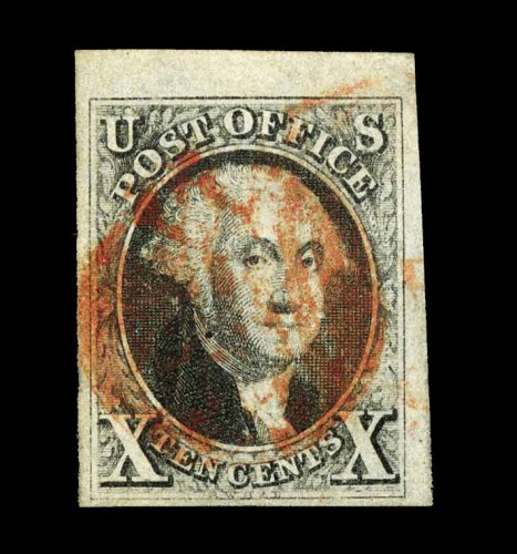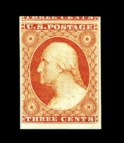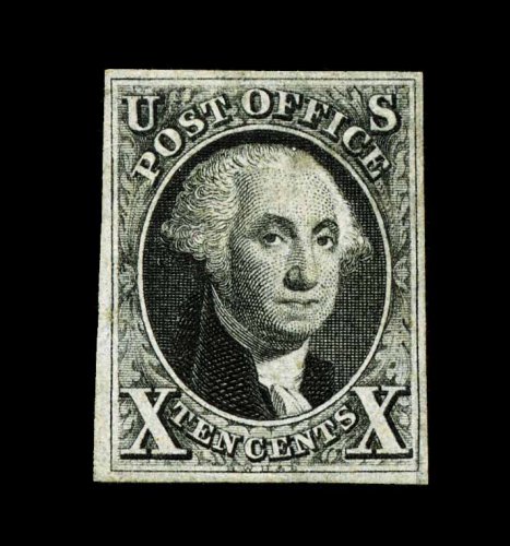 3 og 2 image#2, 10c Black, an exceedingly rare mint example, possessing incredibly intense color and a superb prooflike impression on fresh paper still retaining its original overall bluing, completely free of any of the faults that affect most existing mint copies, full to large margins all around, part o.g., very fine; any certified mint/unused example of the Ten Cent 1847 Issue is an important rarity, but especially so in this choice fault-free condition and still retaining a portion of its original gum; 1969 PF certificate. (Image) 27,500.00