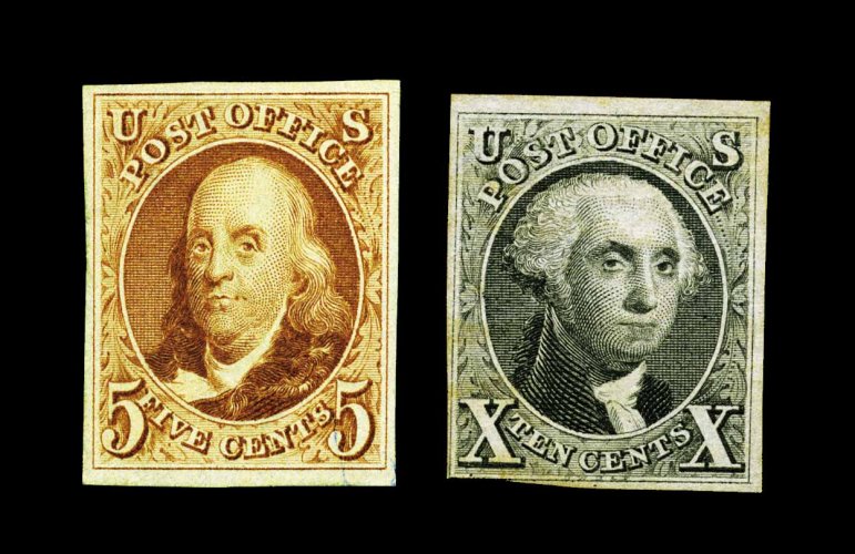 5 og 3-4 image#3-4, 5c and 10c Reproductions, without gum as issued, 5c with strong fresh color and four large margins, stray ink mark at bottom right, 10c with margins close at bottom left and some faint toning, fine; each accompanied by a 2001 PF certificate. (Image) 1,800.00