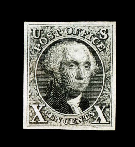 7 og 4 image#4, 10c Black reproduction, without gum as issued, four large and wonderfully well balanced margins, strong color and a crisp impression, extremely fine; 1974 PF certificate. (Image) 1,000.00