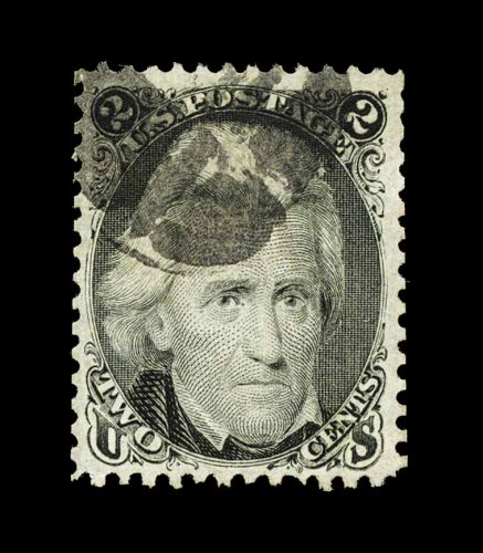 181 O 93 image#93, 2c Black, "F" grill, select used example, marvelously well centered within extravagantly large margins, strong rich color and impression, neat segmented cork postmark at top, an extremely fine used gem; 1993 PSE certificate. (Image) 47.50