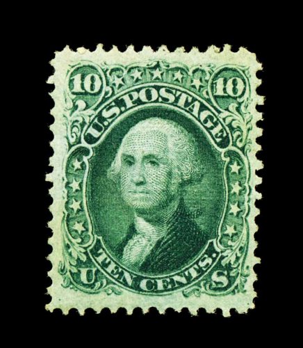 185 og 96 image#96, 10c Yellow green, "F" grill, a very scarce premium quality mint example, being marvelously well centered within uncharacteristically large margins, extraordinarily fresh overall, with sumptuously rich color and a well incised impression, full o.g., lightly hinged, very fine and choice; attractive mint grilled issues with full original gum are extremely difficult to come by; 1991 PF certificate. (Image) 2,500.00
