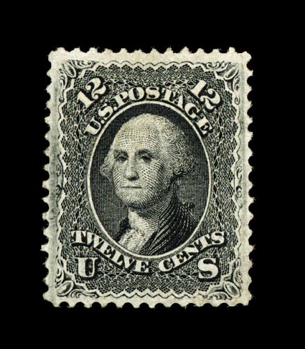 187 O 97 image#97, 12c Black, "F" grill, incredibly choice used example, featuring near perfect centering within lavishly large margins, intense shade and impression, very light face-free postmark, extremely fine; quite elusive in this gem quality; 1988 PF certificate; ex-Renne. (Image) 225.00