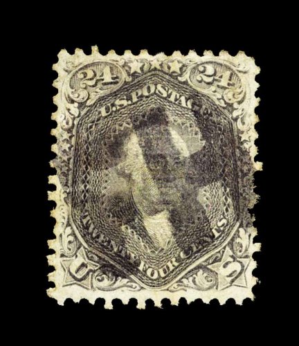 190 og 99 image#99, 24c Gray lilac, "F" grill, a highly desirable mint example of this notoriously difficult value, possessing an impressive overall brilliance rarely seen, with gloriously rich color and a prooflike impression on bright paper, while centered a bit to left this is actually far better centered than the great majority of known mint examples, in fact its perforations are essentially clear of the design all around which is a very rare occurrence, full o.g., lightly hinged, very fine and extraordinarily choice; of all the 1867 grilled issues, the Twenty Four Cent "F" Grill ranks as one of the most challenging to locate in premium original gum condition; 1991 PF certificate. (Image) 5,500.00