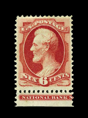 293 og 155 image#155, 90c Carmine, a brilliantly fresh and crisp mint example of this value, one of the most elusive of all Bank Notes to find mint, possessing absolutely gorgeous color in an exceptionally intense shade, plus its impression is quite strong, well centered within large margins, full clean o.g., lightly hinged, very fine; while not perfectly centered, this stamp is particularly choice and is in a remarkable state of preservation; photocopy of a 1978 PF certificate for a block of four, this being the bottom left stamp. (Image) 4,000.00