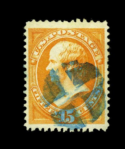 289 O 152 image#152, 15c Bright orange, incredibly well centered within lavishly large margins, gorgeous vivid color in an intense shade on bright paper, beautifully postmarked with a superb complete strike of a blue quartered cork cancel, extremely fine; a lovely used gem which possesses great eye appeal; 1993 PF certificate. (Image) 162.50