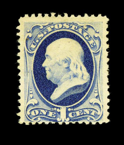 324 og 185 image#185, 5c Blue, perfectly centered amid extravagantly large margins, strong color and impression, full o.g., extremely fine; an impressive large-margined gem; 1981 PF certificate; ex-Hewitt. (Image) 500.00