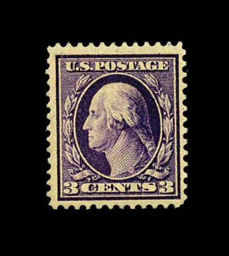 491 og 359 image#359, 3c Deep violet on bluish paper, uncharacteristically large margins for this rare stamp, and being quite well centered within them, sumptuously rich color and a crisp impression, o.g. which is just slightly disturbed, very fine. (Image) 2,000.00