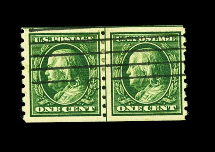 #392, 1c Green coil, perf. 8 1/2 vert., guide