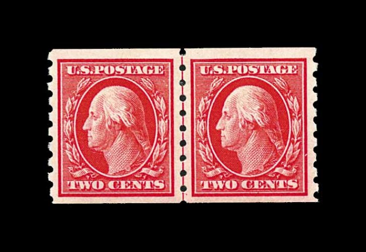 #393, 2c Carmine coil, perf. 8 1/2 vert., guide