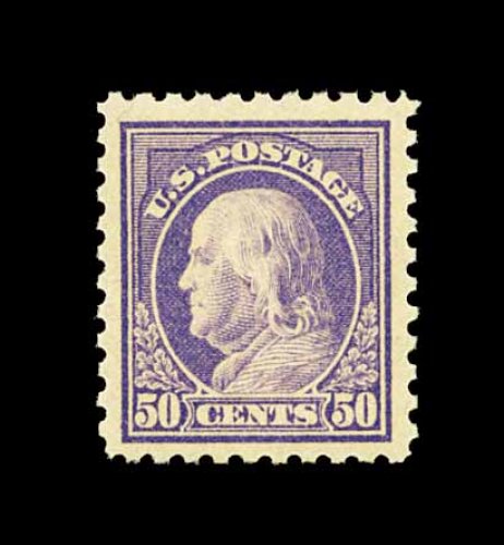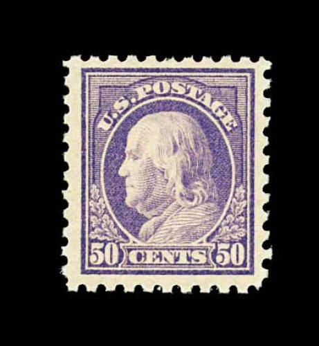 561 nh 440 image#440, 50c Violet, an incredibly choice mint example of a stamp that is almost never found in such premium condition, boasting outstanding centering within huge margins most uncharacteristic of this value, rich color and a strong impression on bright fresh paper, even and intact perforations surround the whole, immaculate o.g., n.h., extremely fine; certified never hinged examples of the Fifty Cent Perf. 10 Franklin are few and far between; 1992 PSE certificate. (Image) 1,050.00