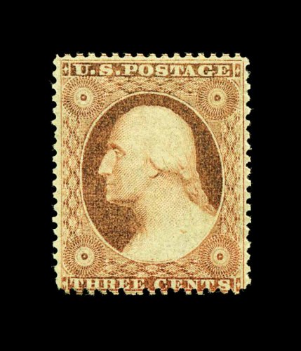 46 nh 25 image#25, 3c Rose, Ty. I, a brilliant mint example of this rare stamp, possessing a remarkable overall freshness that is almost never seen, strong rich color and impression on crisp paper, rather well centered, unblemished full o.g., never hinged, very fine; the only certified never hinged example we have ever encountered; 1996 PF certificate. (Image) for hinged 2,250.00