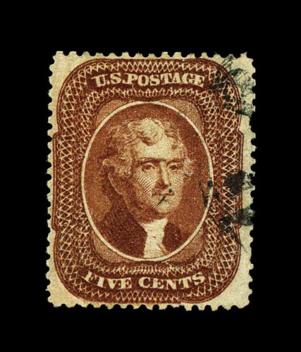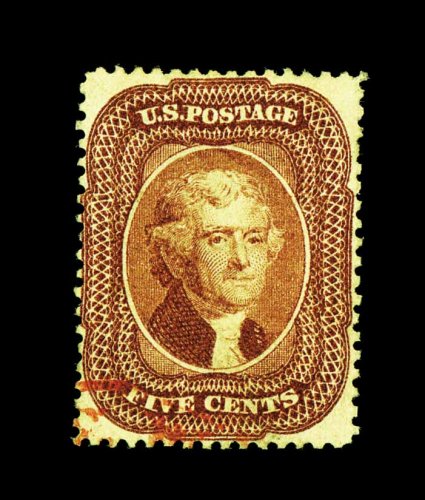51 O 28 image#28, 5c Red brown, Ty. I, attractive used example, quite well centered for the issue, rich luxuriant color and a sharp impression, very light face-free red cancel confined to the bottom left corner, very fine; 1993 PF certificate. (Image) 795.00