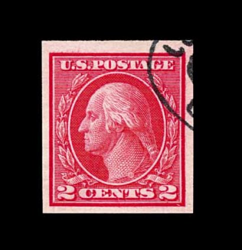 588 O 459 image#459, 2c Carmine imperforate coil, an extremely rare postally used example, with neat crisp strike of a partial double oval postmark at top right, four large margins, intensely rich color, minor small crease at bottom left, otherwise very fine and choice; 1998 PF certificate. (Image) 1,100.00