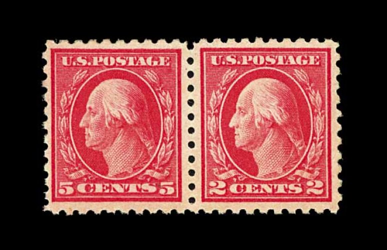 594 og 467 image#467, 5c Carmine error, left stamp in a horizontal combination pair accompanying the 2c value, rich color, well centered, o.g., lightly hinged, choice very fine; 2001 PF certificate. (Image) 550.00+