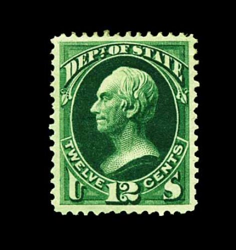 750 og O63 image#O63, 12c State, premium quality mint example, featuring extravagantly large and perfectly balanced margins all around, plus its color is especially deep and luxuriant, full o.g., relatively lightly hinged, extremely fine gem; 2002 PF certificate. (Image) 210.00