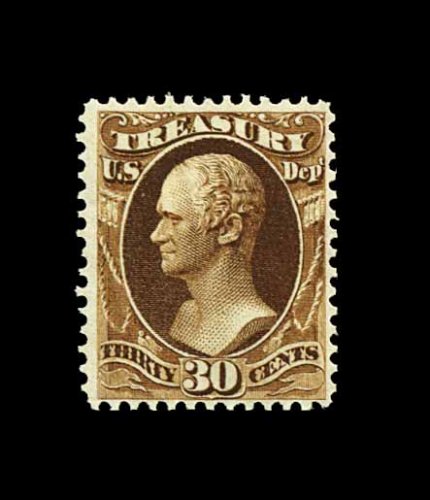 759 og O81 image#O81, 30c Treasury, incredibly fresh, luxuriant color and a razor-sharp impression on bright paper, nicely centered, full clean o.g., barest trace of hinging (if at all), very fine; 1991 PF certificate (n.h. by omission period). (Image) 150.00