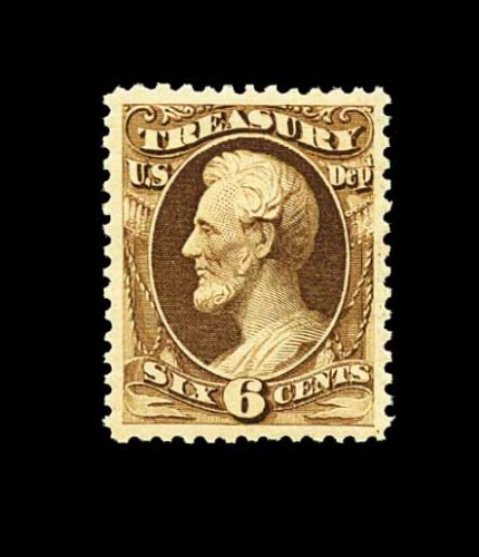 766 nh O110 image#O110, 6c Treasury, on soft porous paper, an incomparable mint single, being in a quality unlike any other we have seen, possessing mathematically precise centering amid lavishly large margins, plus its color and impression could not be more prooflike on immaculate paper, pristine o.g., never hinged, extremely fine gem; a stamp in a condition you wish all officials could be found; 1992 PF certificate. (Image) for hinged 90.00