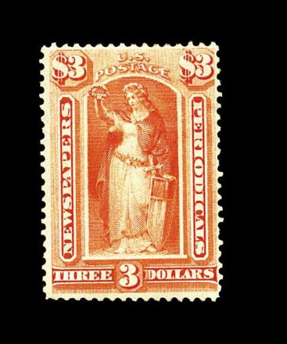 775 og PR25 image#PR25, $3.00 Vermilion, bright color, full o.g., fine; a seldom offered newspaper stamp in any condition; 1998 PSE certificate. (Image) 900.00