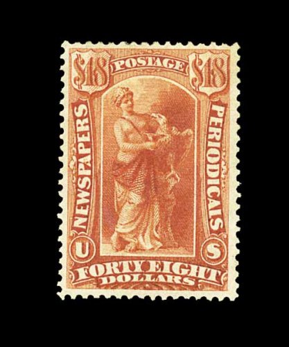 779 og PR31 image#PR31, $48.00 Red brown, an extraordinary quality mint example of this rare newspaper stamp, being wonderfully well centered within large margins, rich luxuriant color and a deeply etched impression, full clean o.g. that has been relatively lightly hinged, extremely fine; an important condition rarity; 1988 PF certificate. (Image) 3,000.00
