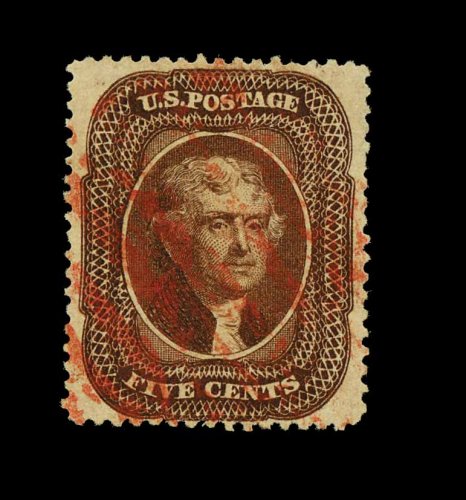 61 O 30A image#30A, 5c Brown, Ty. II, used, particularly well centered within uncharacteristically large margins, gorgeous intense color and impression which are wonderfully complemented by a vivid red grid cancel, very fine and quite choice; 1996 PF certificate. (Image) 295.00