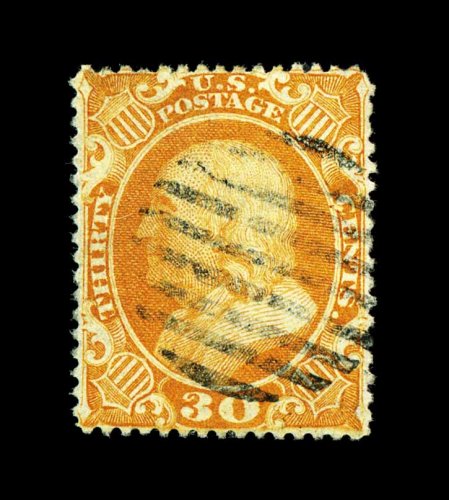78 O 38 image#38, 30c Orange, used, incredibly well centered, gorgeous intense color and impression on bright paper, light central strike of a rimless grid cancel, extremely fine; seldom encountered this choice used; 1983 PF certificate. (Image) 450.00
