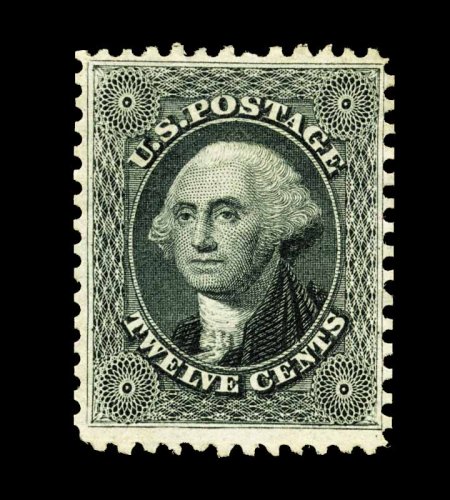 90 og 44 image#44, 12c Greenish black reprint, without gum as issued, rather well centered, rich color and a sharp impression, very fine; 1973 PF certificate. (Image) 3,250.00