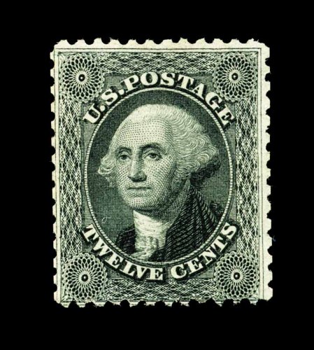 89 og 44 image#44, 12c Greenish black reprint, without gum as issued, well centered within uncharacteristically wide margins, strong color and crisp impression, very fine; a particularly choice example of this terribly difficult reprint rarity; only 489 issued; 1966 PF certificate. (Image) 3,250.00